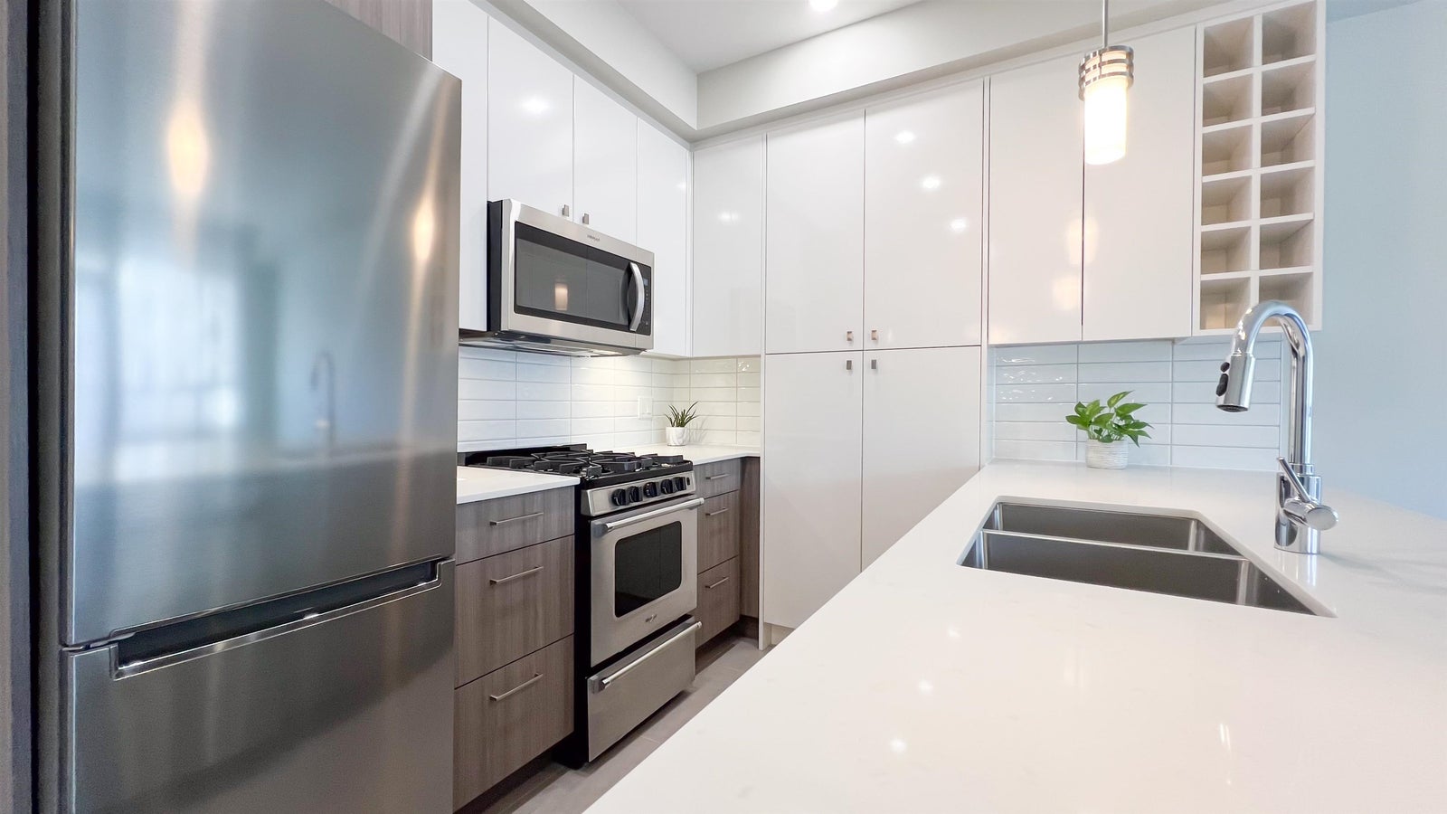 New 2026 gorgeous condo at the Hamilton Village master planned community. Bright and airy with a 9-foot ceiling, central air conditioning, and forced-air heating. The spacious open kitchen features quartz countertops, a gas stove, and stainless steel appliances, making your cooking experience very enjoyable. The large balcony with a gas hookup is perfect for barbecues. EV charger at your parking spot. The Hamilton Recreational Center, Hamilton Elementary, and walking trails are at your doorstep. Perfect location with easy access to shopping, skytrain, highways, and surrounding areas such as New Westminster, Burnaby, Surrey, and others.