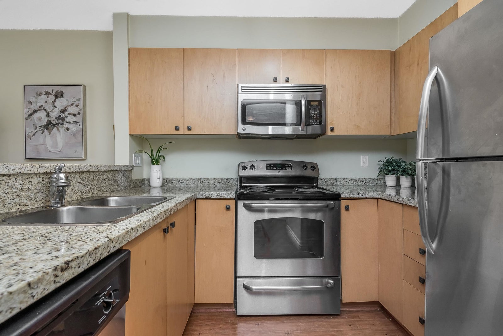 Court order sale, one bedroom suite, laminate flooring, granite counter tops, spacious bedroom with 2 closets and semi ensuite. Located near Fleetwood Shopping Plaza and future SkyTrain Station.