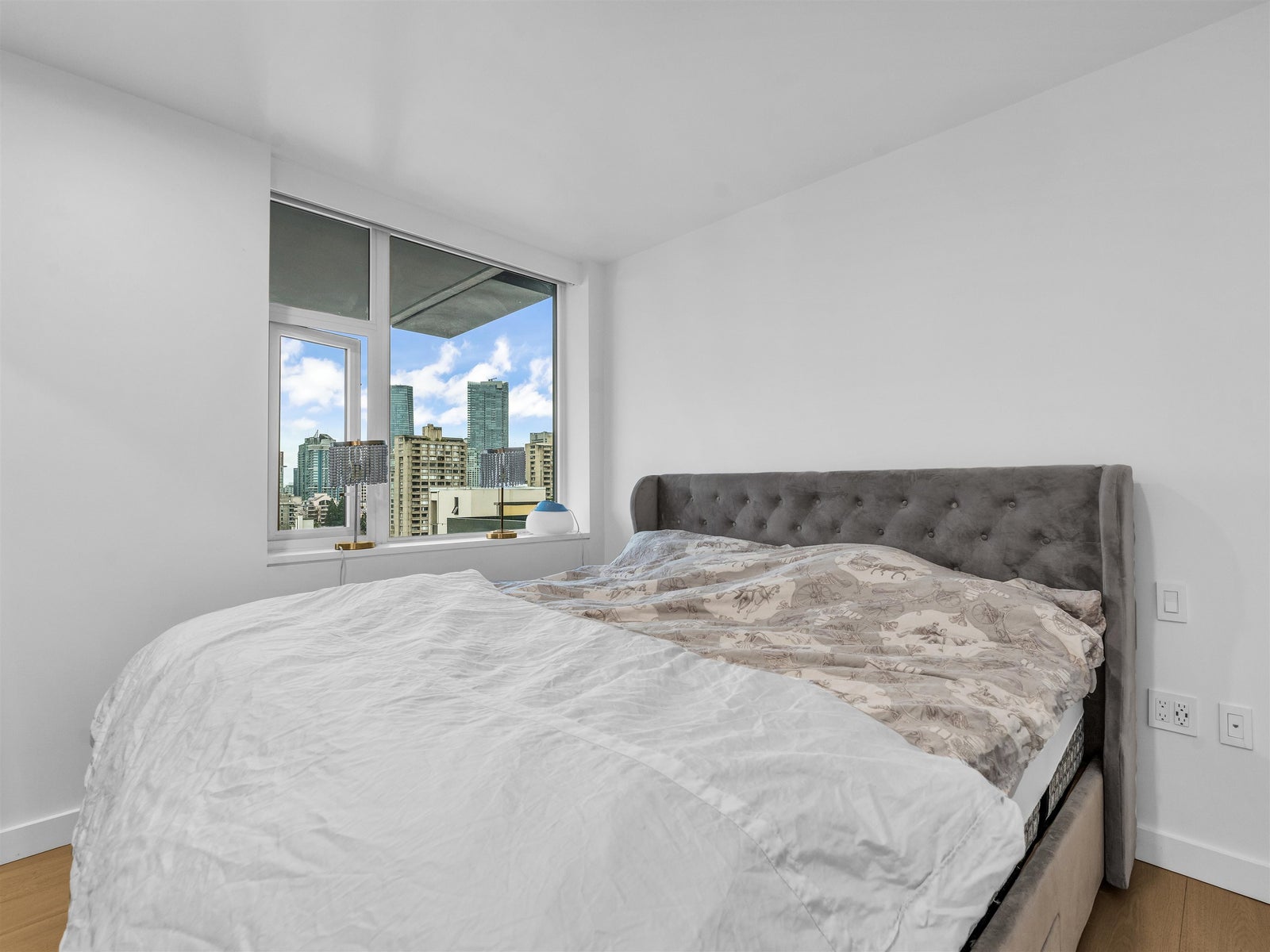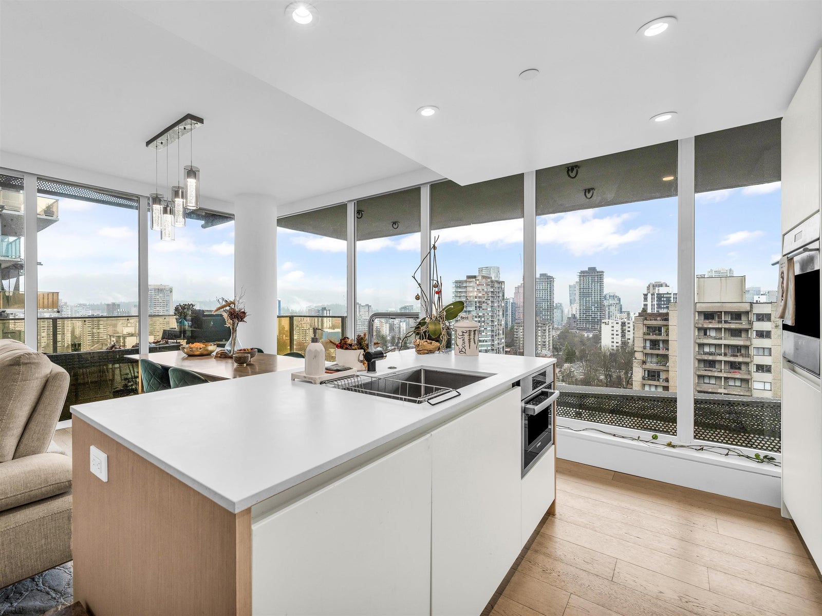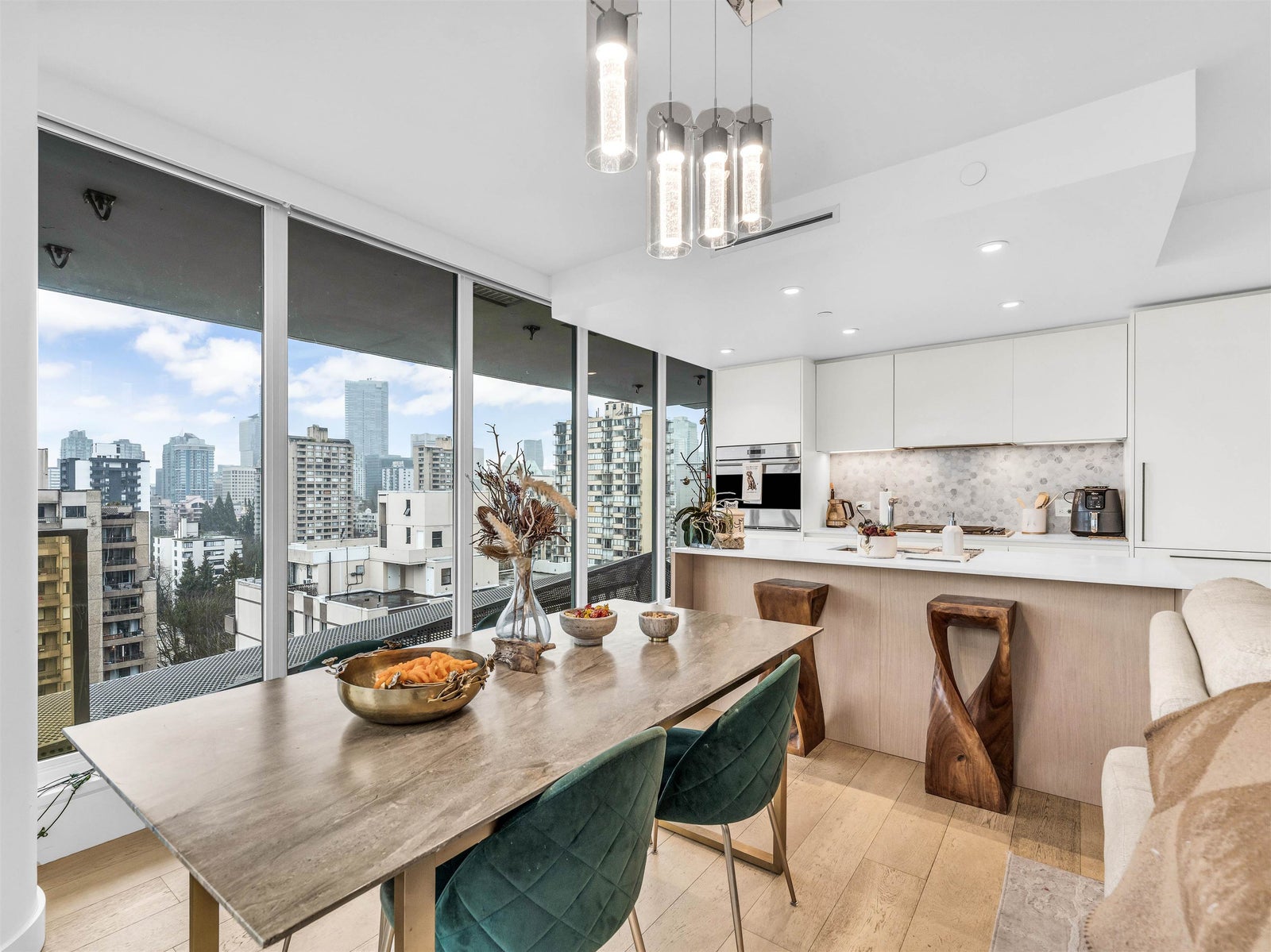 High above the West End, this two-bedroom, two-bathroom home invites you to enjoy endless city and ocean views with a thoughtful layout in one of Vancouver’s most vibrant neighbourhoods. Each bedroom has its own ensuite, offering comfort and privacy, while a spacious covered balcony extends the living space outdoors. The open-concept living and dining areas are filled with natural light and showcase sweeping views. Just minutes from beaches, the seawall, and countless restaurants and cafes, this condo expertly blends comfort with the best of city living.