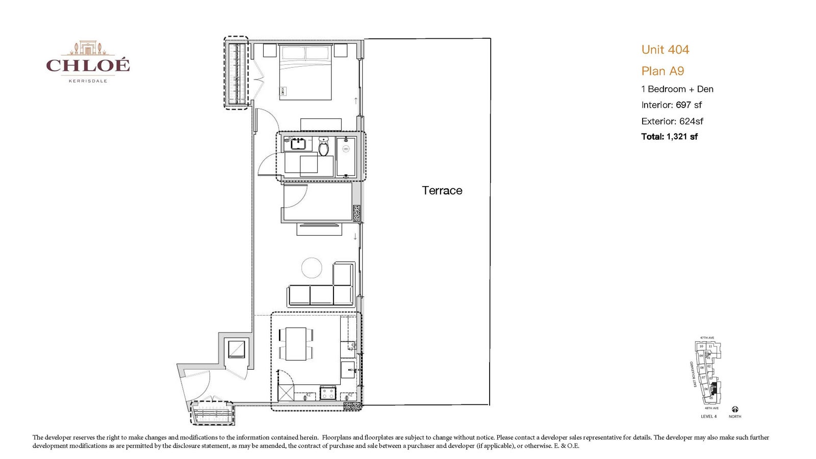 Discover Chloé in the prestigious heart of Kerrisdale. This 697 SF 1-bedroom + den with large 624 sf private deck features Parisian-inspired interiors by CHIL Interior Design, overheight ceilings, herringbone engineered hardwood floors, Italian porcelain tile, and Gaggenau appliances including a gas cooktop. Bath boasts quartz counters, Kohler sink and fixtures, plus Nu Heat in-floor heating. Air conditioning included. Quality concrete construction ensures durability, complemented by a 2-5-10 year warranty. Enjoy concierge service, elegant lounge & music room, fitness studio, landscaped courtyard with seating, and a common rooftop terrace. Steps from boutique shops, cafés, parks, and top schools, offering city living in a serene neighbourhood. .