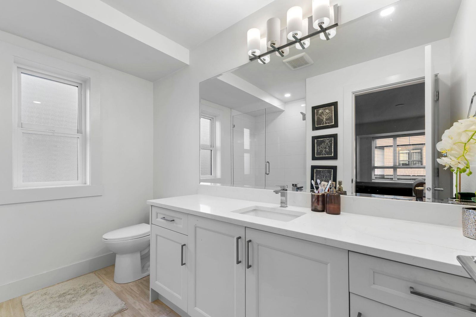 Large CORNER UNIT townhouse is the heart of Langley City. The expansive living space comprises of 4 bedrooms & 4 bathrooms in addition to the large Rooftop Terrace with beautiful unobstructed views of Mount Baker & the Golden Ears. This home features a large garage with workshop space and plenty of storage, a full-sized deck with sliding doors, a huge kitchen with big Island and stainless steel appliances, Dining room, bright & spacious living room to enjoy evenings with family. This friendly neighborhood is close to schools, Willoughby Town Centre, Children's Park, Dog park and Brydon Lagoon.