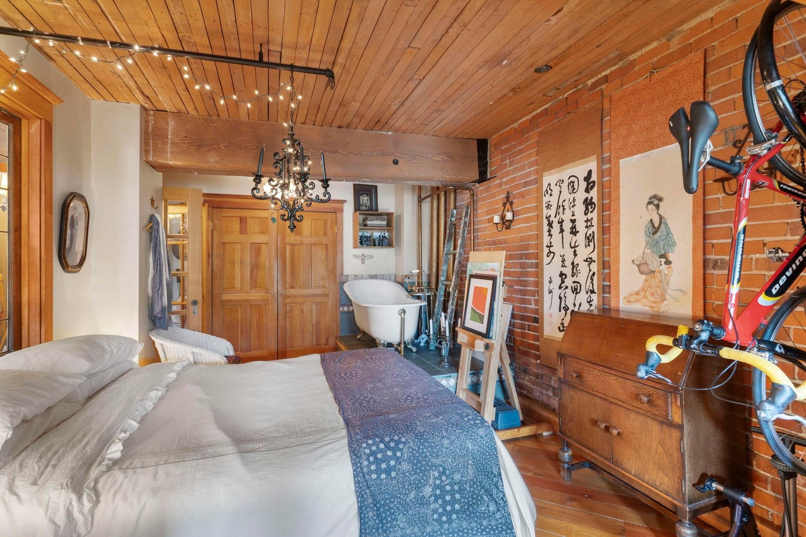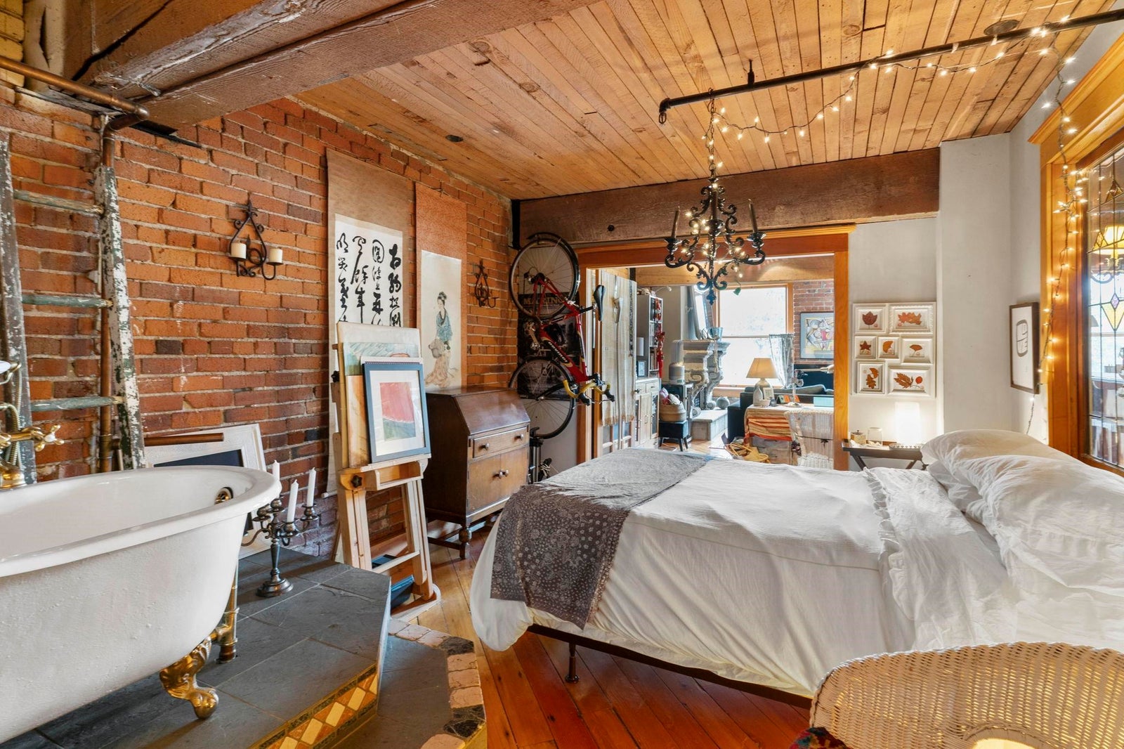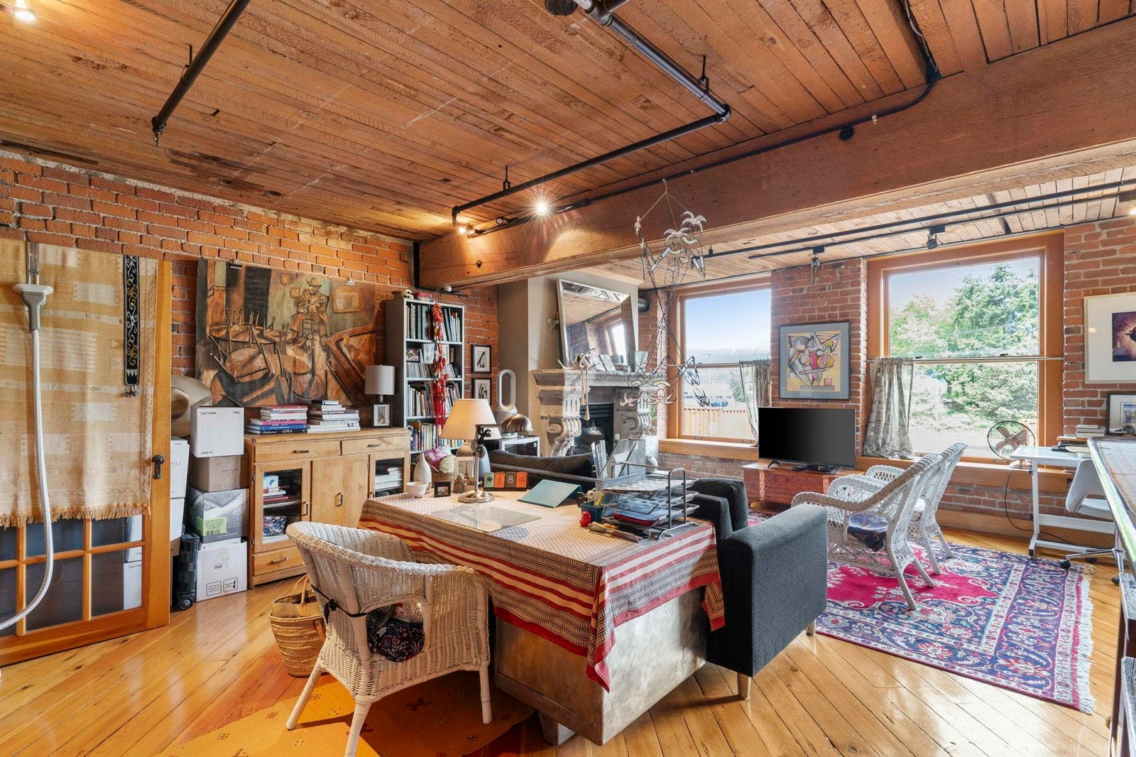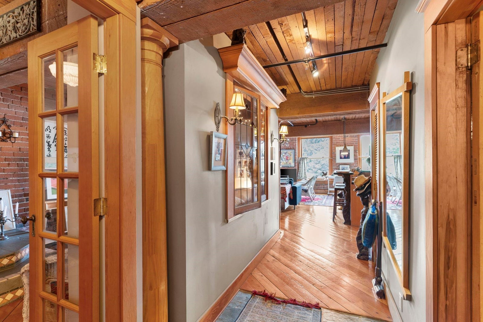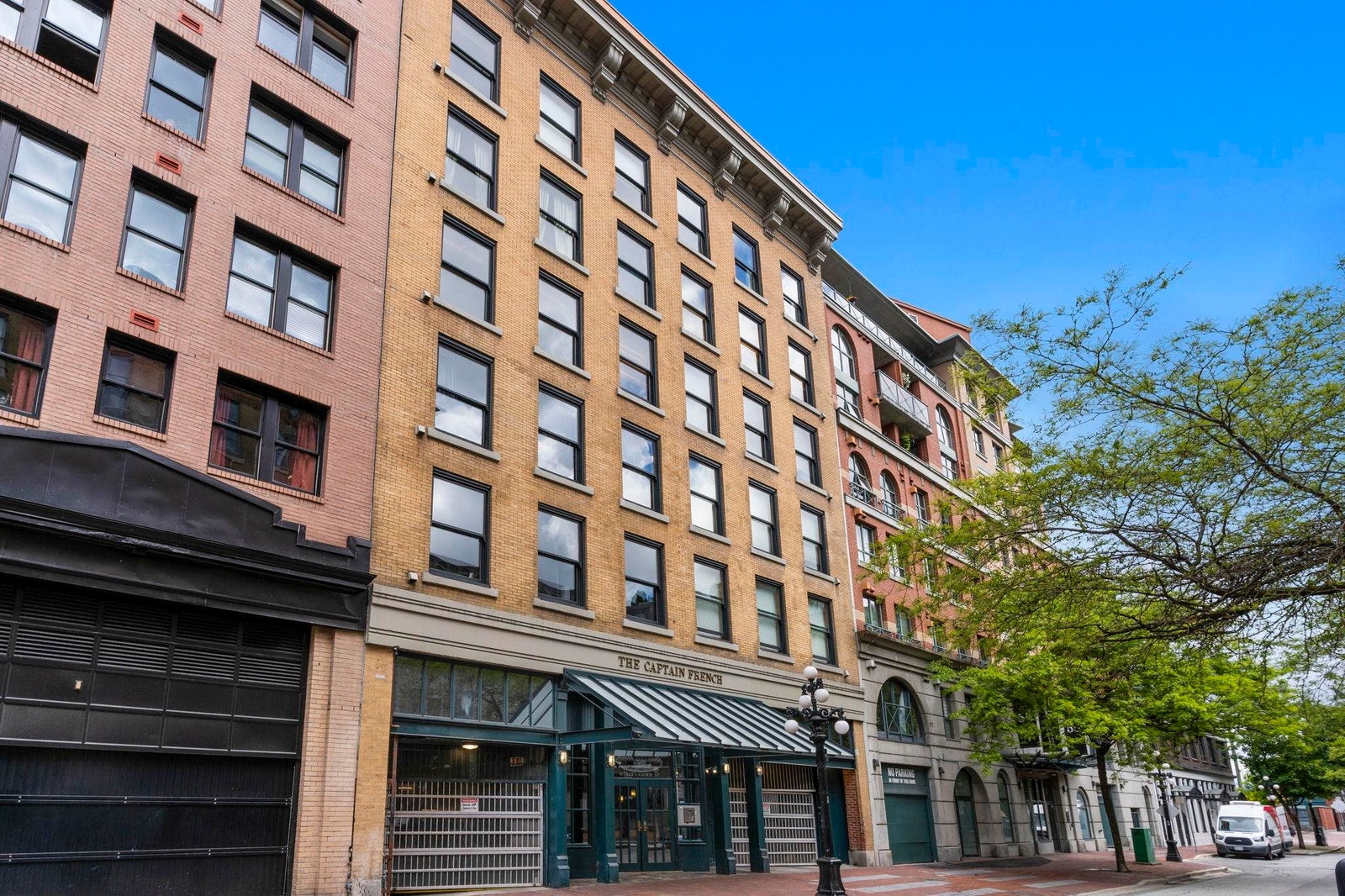In vibrant Gastown, The Captain French offers a unique blend of heritage architecture and modern flair. This generously sized 1 bedroom loft showcases timeless details brick feature walls, exposed wood beams, rich flooring that add depth and personality. Oversized windows capture panoramic views of the mountains, adding natural beauty to the everyday. The open concept living area includes a gas fireplace for cozy evenings, while the kitchen offers great layout with a breakfast bar and plenty of counter space. Whether it's a quiet workspace, extra storage, or a reading retreat, the flexible layout delivers. All of this just steps from Gastown cafes, boutiques and more. Residents enjoy access to a rooftop patio with BBQ, secure underground parking and a spacious storage locker.