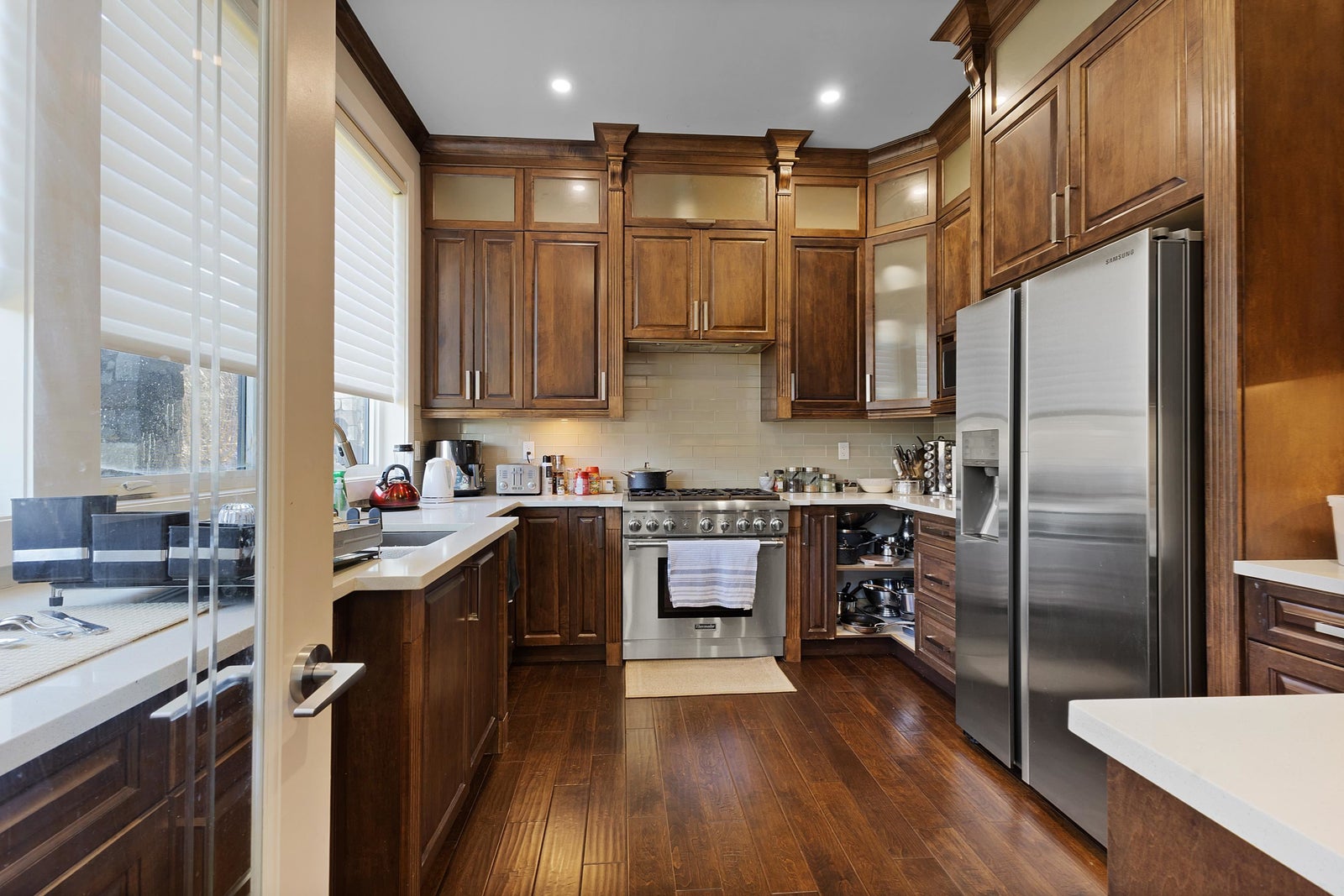 A rare opportunity to own a custom-built luxury estate set on a massive, flat 1-acre lot right in town. This incredible 7,000+ SQFT home delivers uncompromising scale & design with soaring vaulted ceilings, 11 bedrooms (4 ensuites), 12 bathrooms, 5 full kitchens equipped with high-end appliances, 4 laundries & many more custom features. The grand entrance leads to an elegant family room with one of five fireplaces, a refined formal dining area, private theatre, bar, & expansive patios ideal for entertaining. Relax in the private hot tub setting or take advantage of the extensive parking for all your toys. BONUS: a fully self-contained coach house with its own driveway & separate road access, offering incredible flexibility. Unmatched luxury & way too much to list, call to book your showing