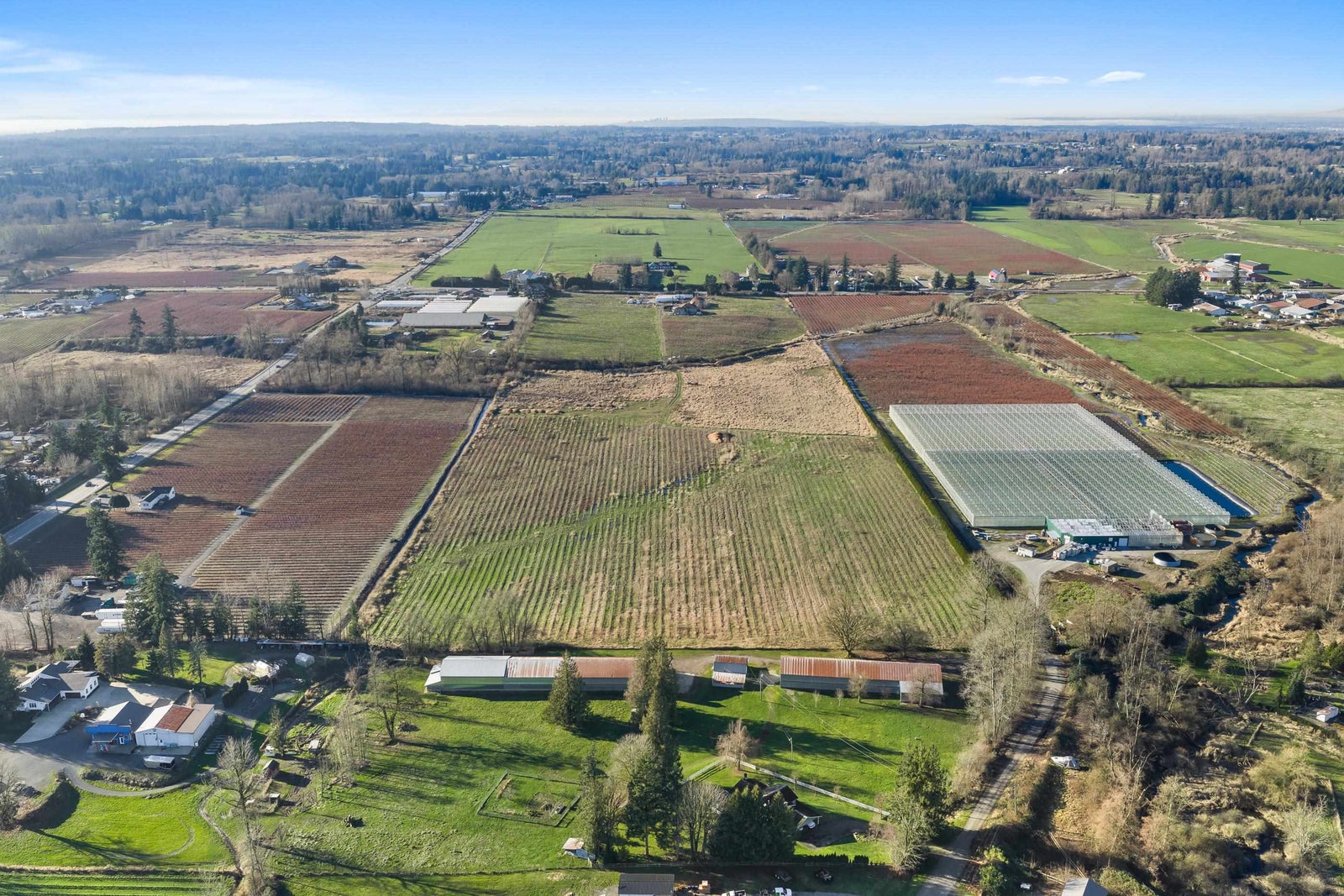 Court Ordered Sale. Estate style property centrally located with a 4,984 sq.ft. home built in 2003 on 47 acres. The residence offers 10 bedrooms and 7 bathrooms, open floor plan and and views overlooking the blueberry fields. The farm includes approximately 20 acres planted in blueberries with drip irrigation in place. Water supply from four wells. Additional improvements include a Quonset shop (approx. 40’ x 60’). Property features a frontage of 775 FT on 264 Street plus additional access off 18 Avenue (from 272 Street).