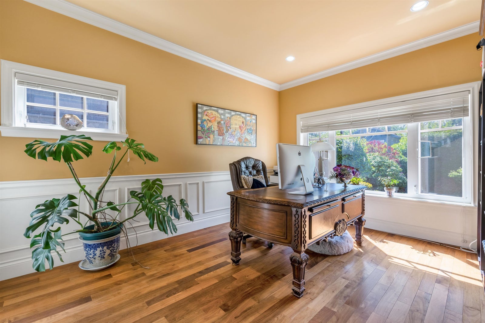 Well-built and impeccably maintained Tudor-style home with lane access in prestigious South Granville. Fully renovated in 2008 with an excellent floor plan. Main floor offers elegant principal rooms, gourmet kitchen with wok kitchen, bright office, and covered deck off the family room. Upstairs features five spacious bedrooms. Basement includes a bright recreation room with wet bar, games room, and one bedroom. Exceptional craftsmanship throughout. Steps to Maple Grove and within the Magee Secondary catchment.
