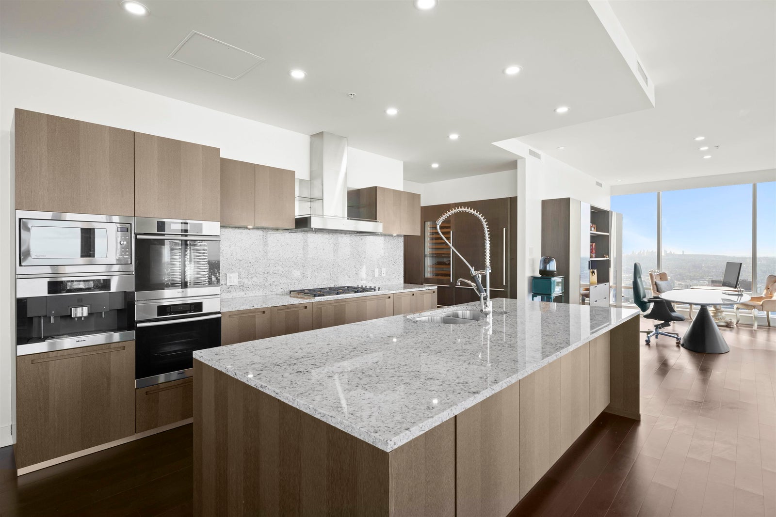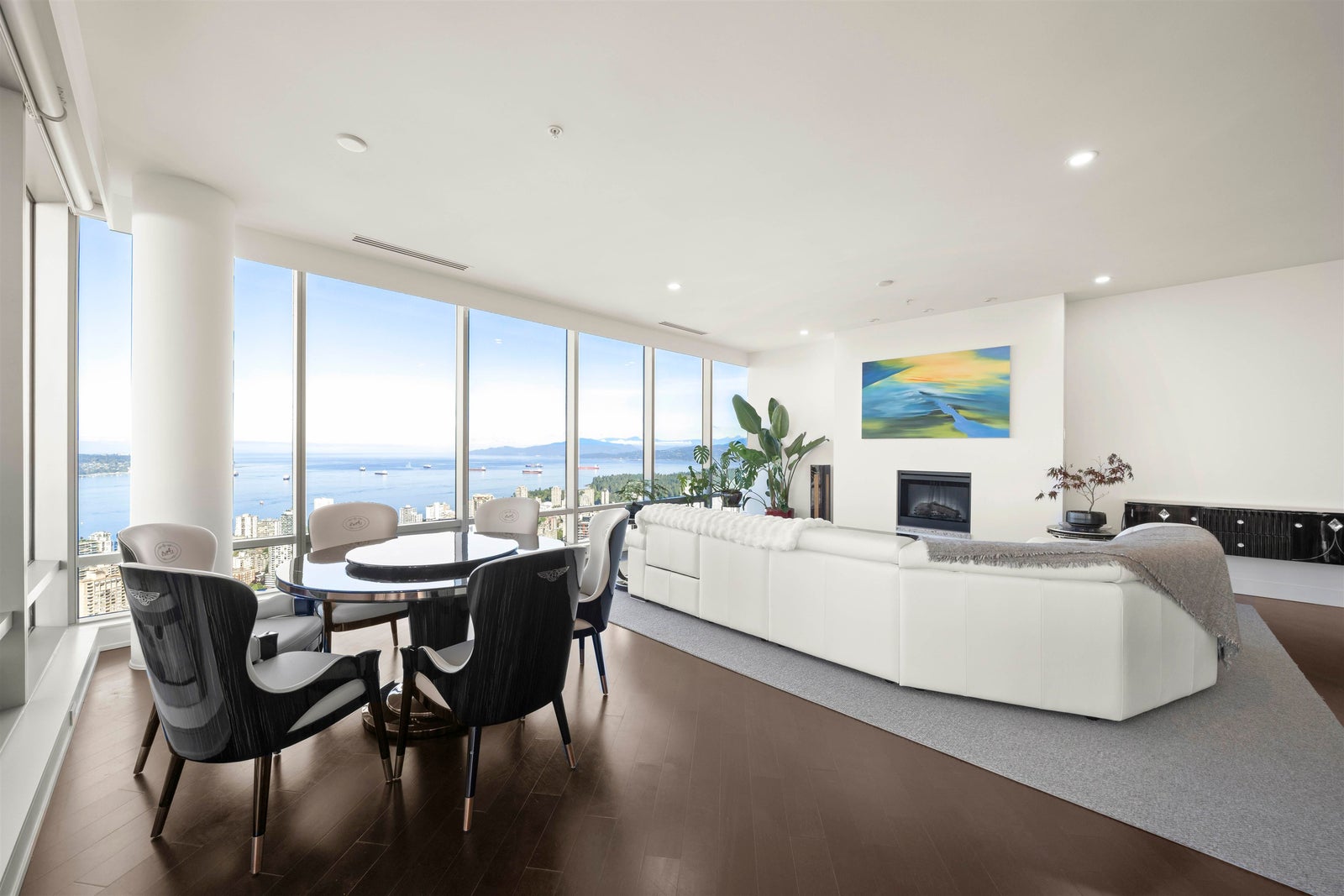 Step into luxury living at Shangri-La Estates! This 2,419 sqft residence soars above the city on the 57th floor, offering UNRIVALED, PANORAMIC VIEWS of English Bay, Stanley Park, Coal Harbour, and Mt. Baker...Central A/C, high-end Chef’s Boffi kitchen with Sub-Zero, Miele appliances, wine fridge, polished granite countertops. Enjoy 5-star hotel amenities: 24hr concierge, valet, pool, spa, and elite fitness centre. Central location! Steps to luxury shopping and world-class attractions. Comes with 2 parking stalls & 2 storage lockers. Golden opportunity to own a world-class masterpiece in Vancouver. Absolute brilliance in the sky!